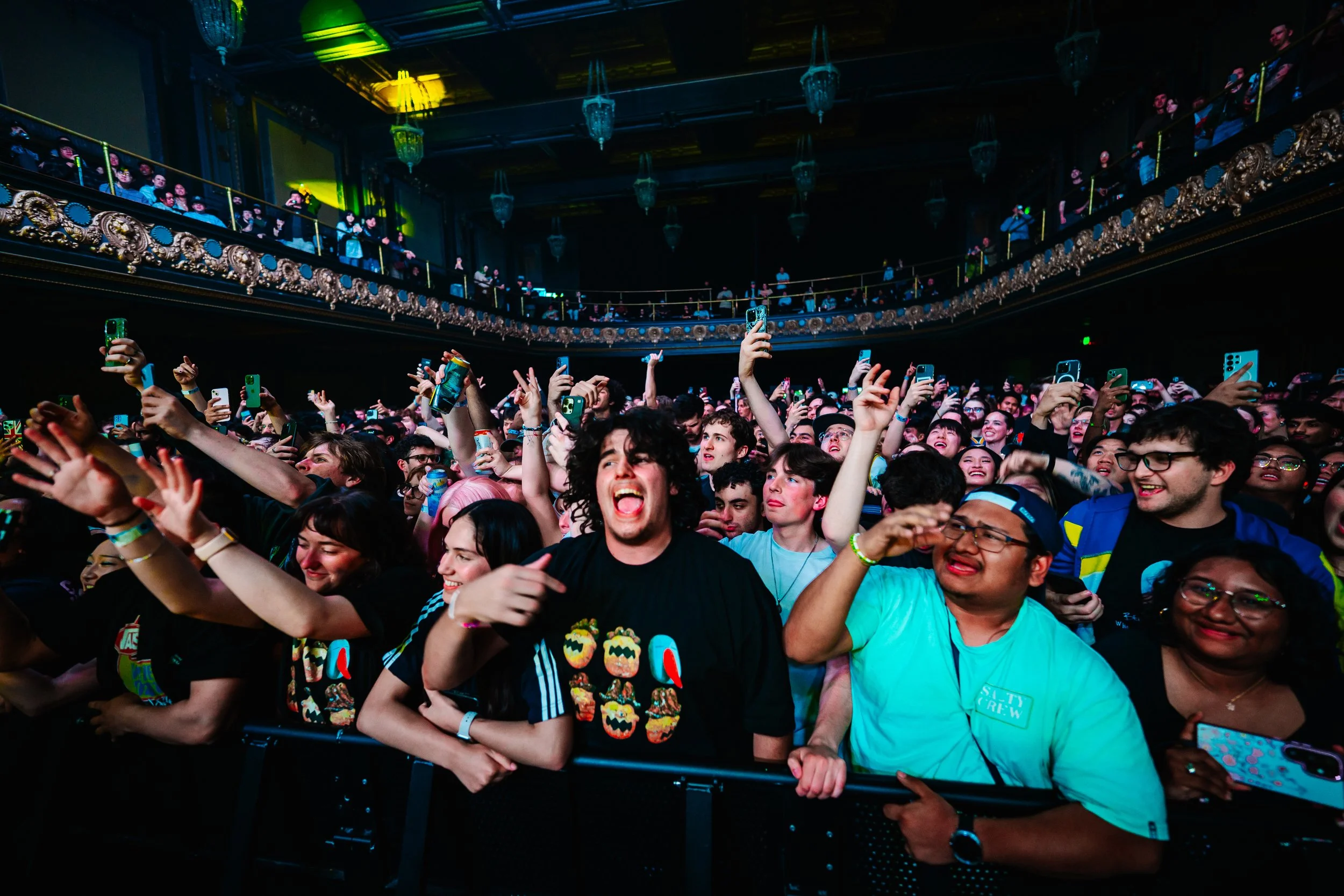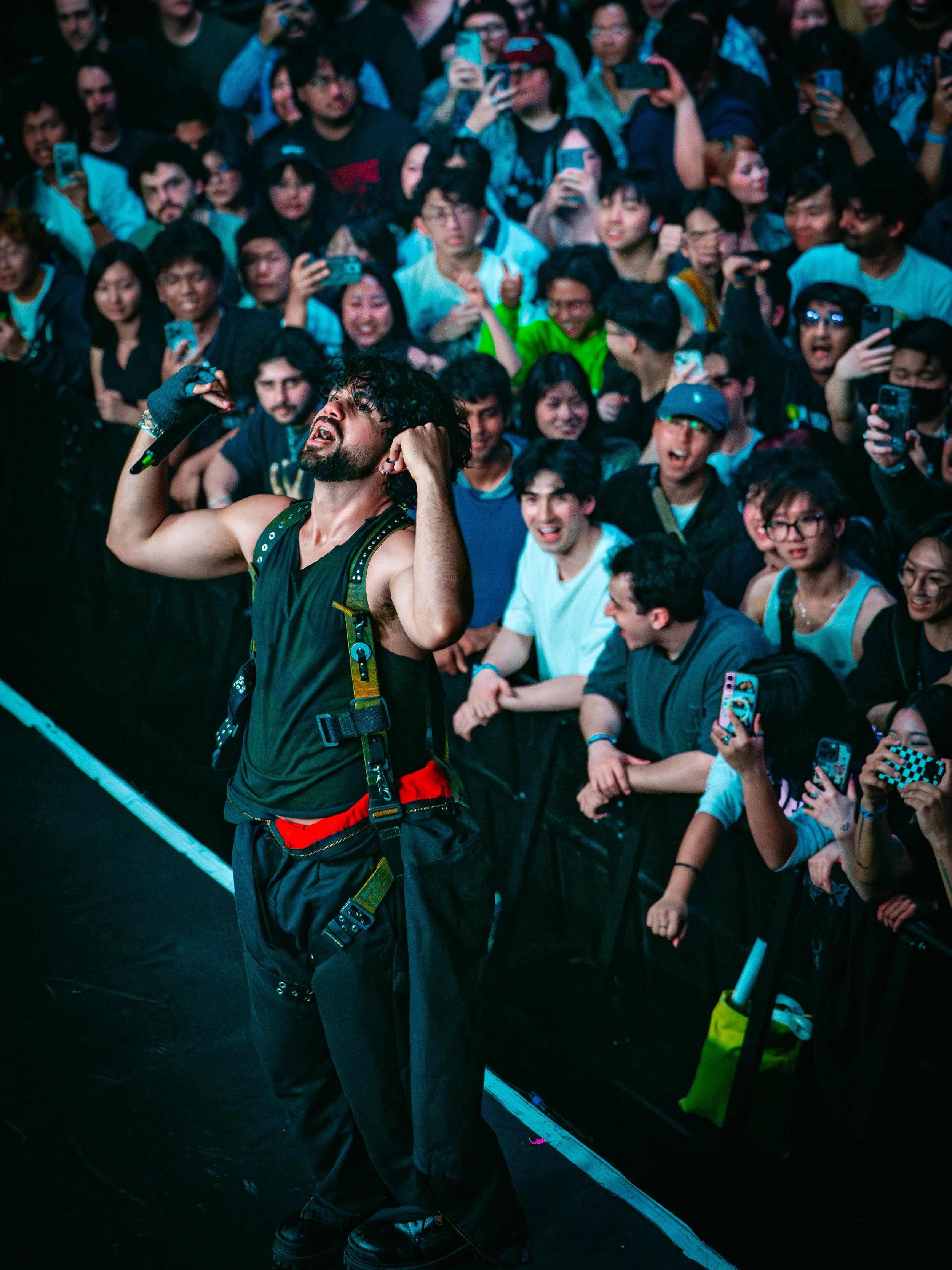 That connection was most obvious at the barricade. Aries repeatedly worked the front row—leaning out over fans, grabbing hands, and letting sections carry vocals. From the floor, the energy felt relentless; from above, it was clear the entire room was locked in.