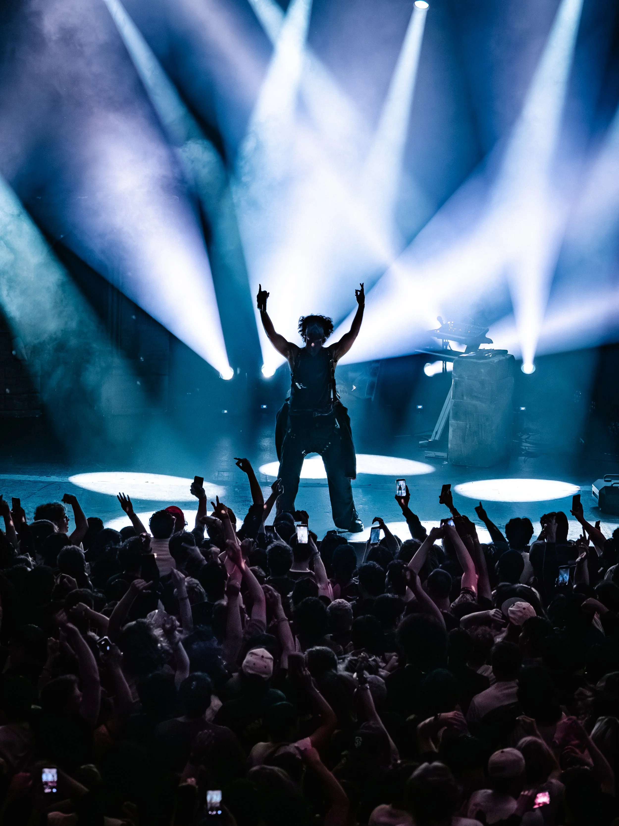 Midway through, the tone started to shift without losing momentum. “GLASS JAW” and “WILDFIRE” opened things up, with wider lighting and more space in the sound. For “WILDFIRE,” Aries picked up an acoustic guitar, stripping things back while still holding the room’s attention. The set continued to breathe from there—eventually settling into one of its quietest points as he moved to the piano for “HOME,” turning it into something more intimate and direct than its studio version.